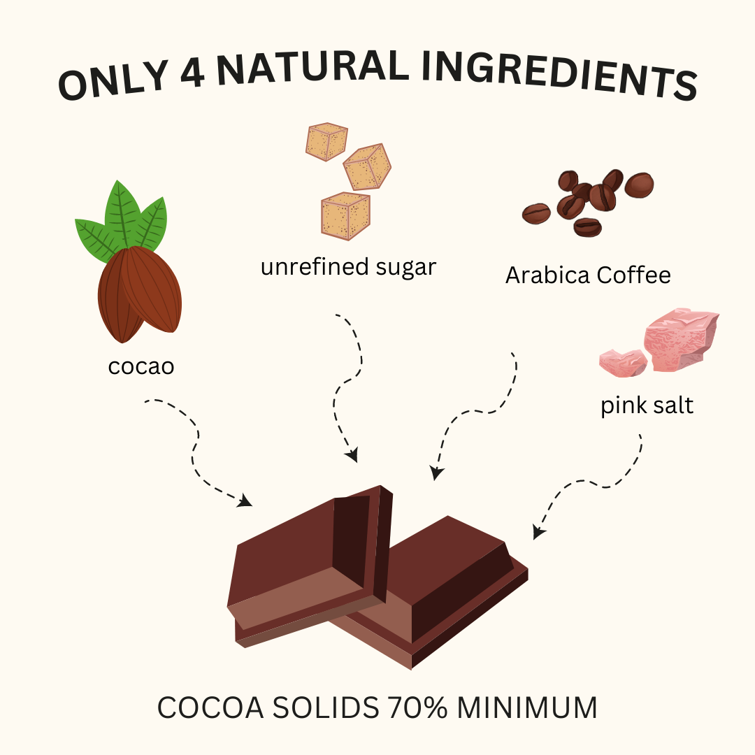 🍫 Prepare for a taste bud adventure! Handcrafted in sunny South Africa with love and a touch of quirkiness 🥳 with only four extraordinary ingredients making up this chocolate extravaganza.